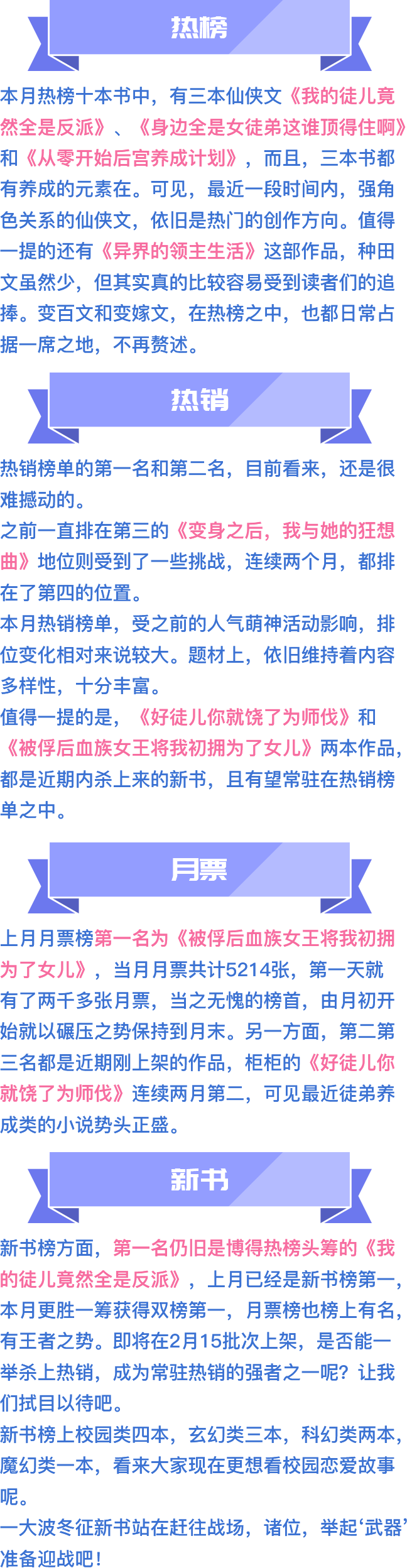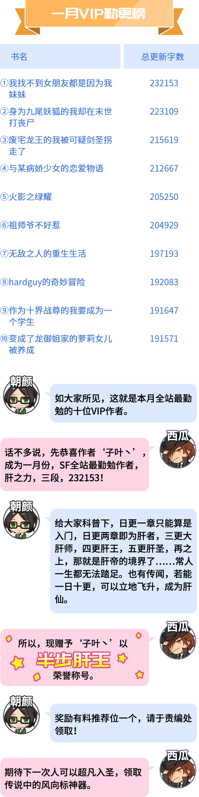 每月末对小说的订阅+打赏销售进行排名,并按排位