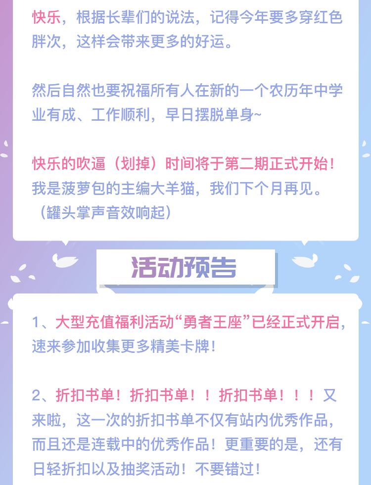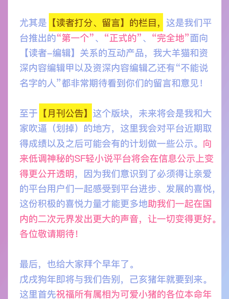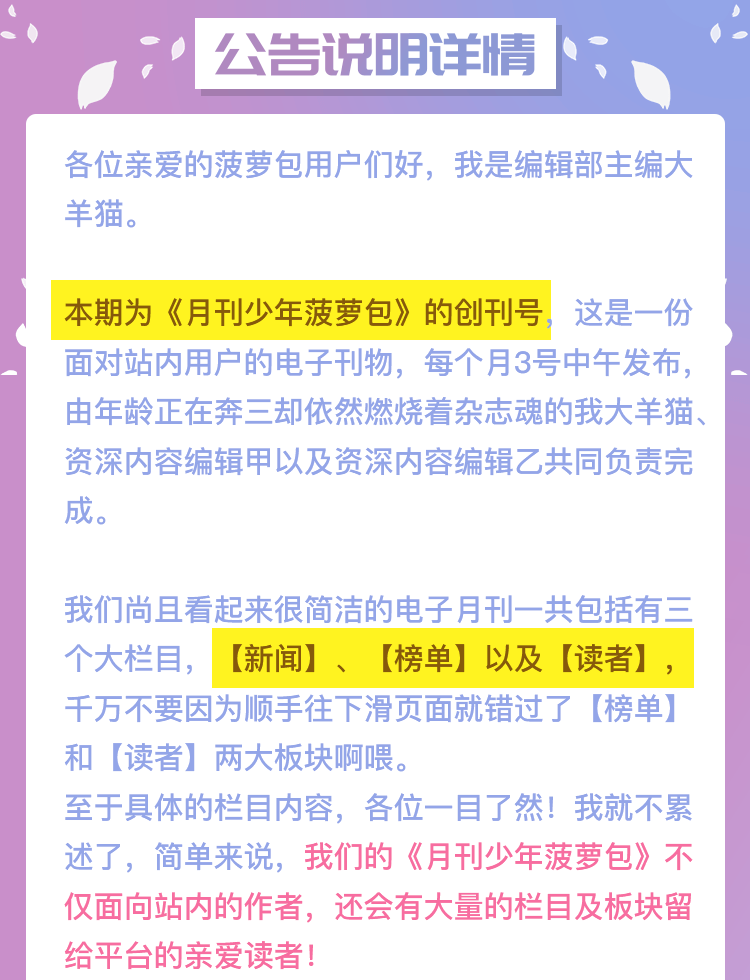 针对本期“月刊少年菠萝包”以及我们平台本身,